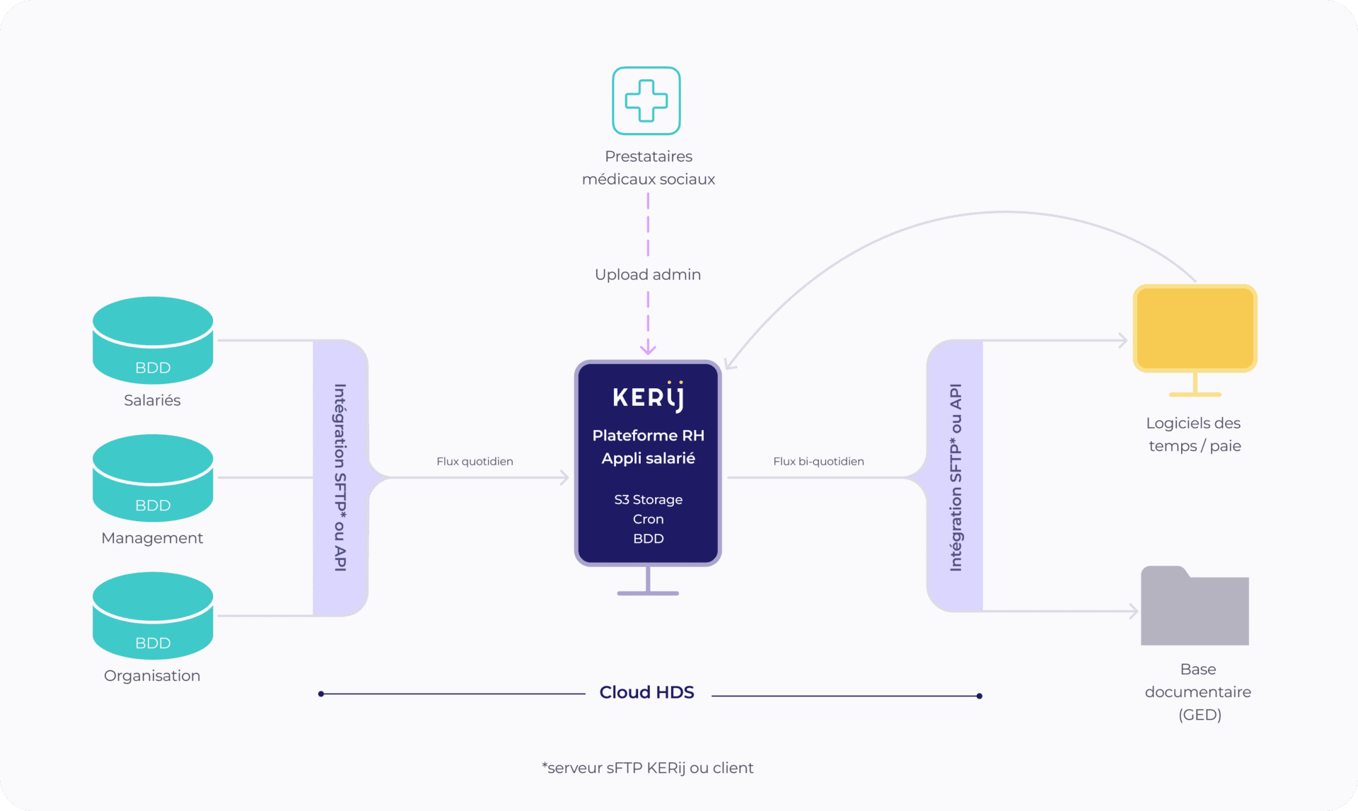 Hébergée en mode SaaS, KERij s’intègre simplement à votre environnement technique existant.